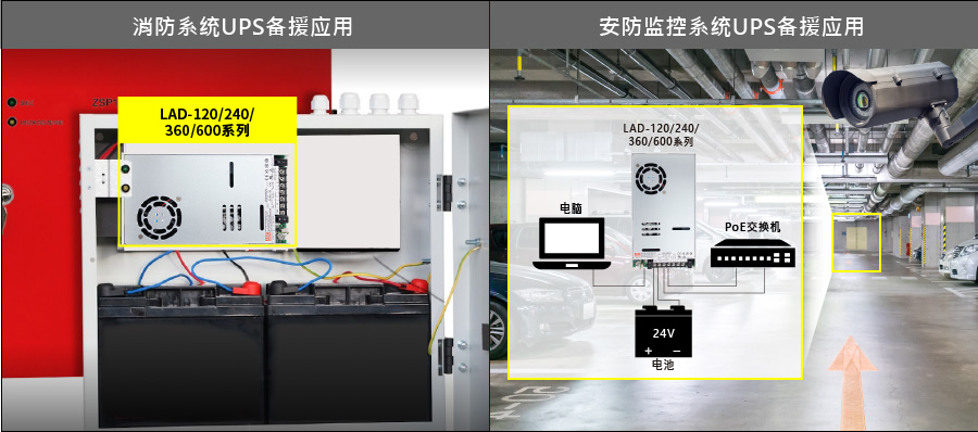 LAD系列采1U薄型機(jī)殼設(shè)計(jì),規(guī)劃有基礎(chǔ)款(LAD-120/ 240/ 360/ 600)及UART通訊款(LAD-360/600xU)兩種。此兩種版本共通規(guī)格特點(diǎn)有:主輸出(CH1)可供負(fù)載使用并內(nèi)建附屬輸出(CH2)可同時(shí)對(duì)電池充電、搭配電池可構(gòu)成UPS備援功能、CH1輸出電壓可調(diào) -20~+5%,可滿足不同電池種類及電壓微調(diào)需求、完整保護(hù)機(jī)制(短路/ 過(guò)載/ 過(guò)壓/ 過(guò)溫/ 電池欠壓/ 電池反接不壞)、通過(guò)CB/ UL/ CE/ UKCA/ EAC多國(guó)認(rèn)證并設(shè)計(jì)符合中國(guó)GB17945、GB4717(僅UART版本)消防法規(guī)…等,適用于安控、消防、緊急照明、警報(bào)、機(jī)房不斷電、門(mén)禁警報(bào)與中央監(jiān)控..等系統(tǒng)。